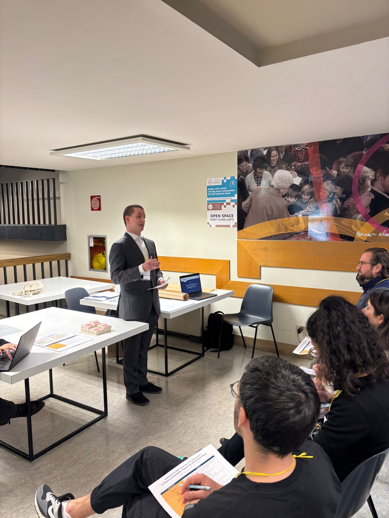 On November 29, 2025, during the Economy of Francesco Global Event in Castel Gandolfo, Italy, approximately twenty-five participants from across continents gathered for a workshop titled “Banks with a Soul: serving local communities for the Common Good.” The session, part of the Finance and Humanity Village, sought to bridge centuries of cooperative financial tradition with contemporary visions for an economy rooted in dignity, care, and community service.