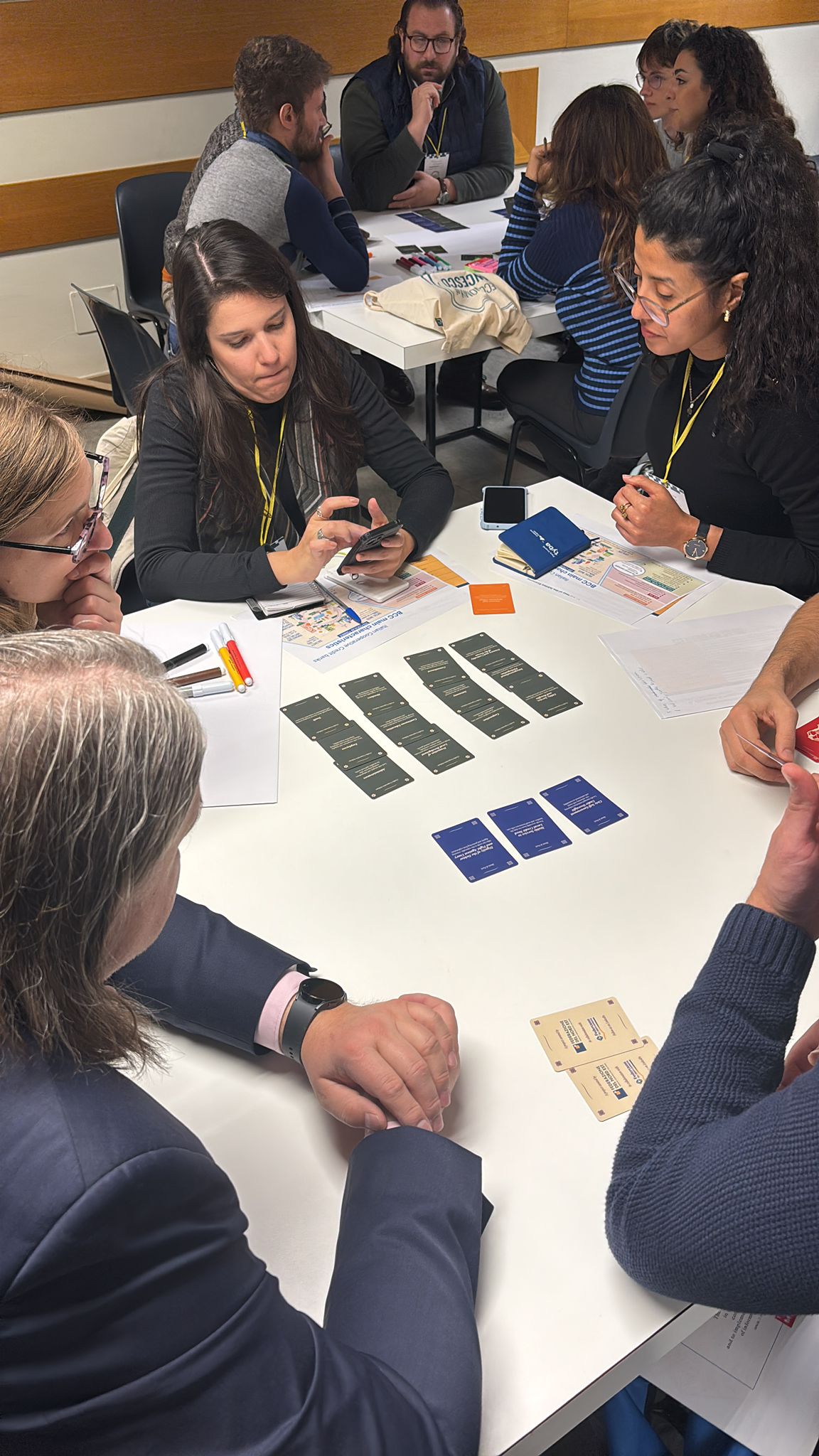 Divided into three diverse groups representing Latin America, North America, Europe, Africa, and beyond, participants received decks of value cards drawn from two complementary traditions: the contemporary Credito Cooperativo movement and the historical Monti di Pietà. Each group was tasked with selecting five core values to define their vision of the bank of the future, imagining financial institutions that could endure and maintain ethical consistency across at least fifty years.