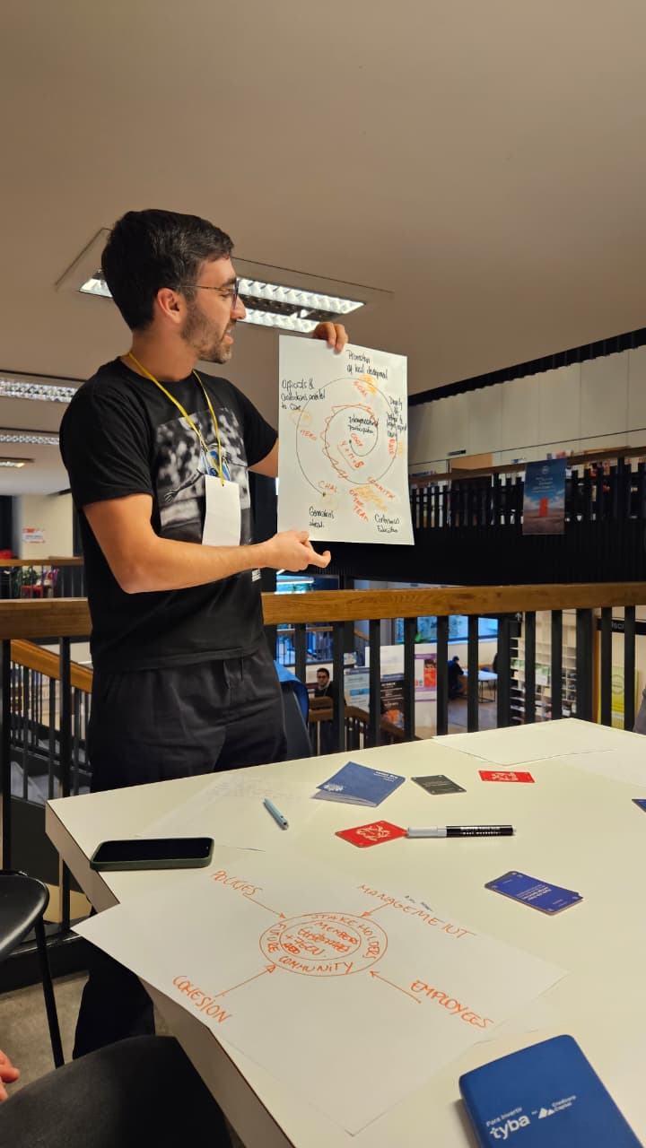 Despite working independently, the three groups converged remarkably on several core themes. Continuous education emerged as essential infrastructure for sustainable cooperative finance, extending beyond client financial literacy to encompass ongoing learning for employees, administrators, and leadership. One group’s conversation was catalyzed by a seventeen-year-old Italian participant who candidly shared his struggle to understand financial decisions. While his peers had gained financial fluency through family guidance, he felt blind in a market his future depended upon. Truly cooperative institutions must empower all members to become confident economic actors rather than passive consumers of opaque financial products.